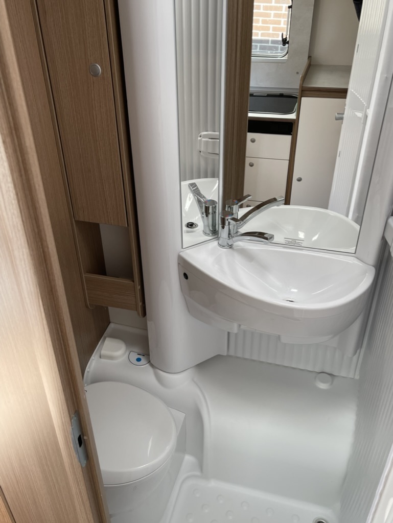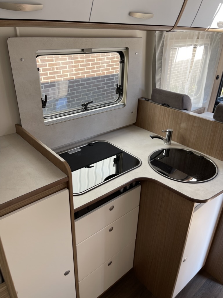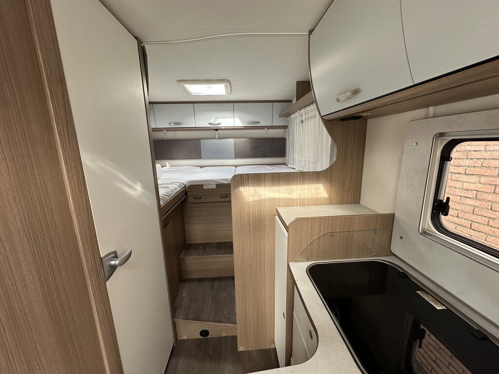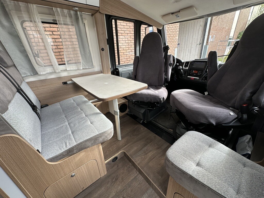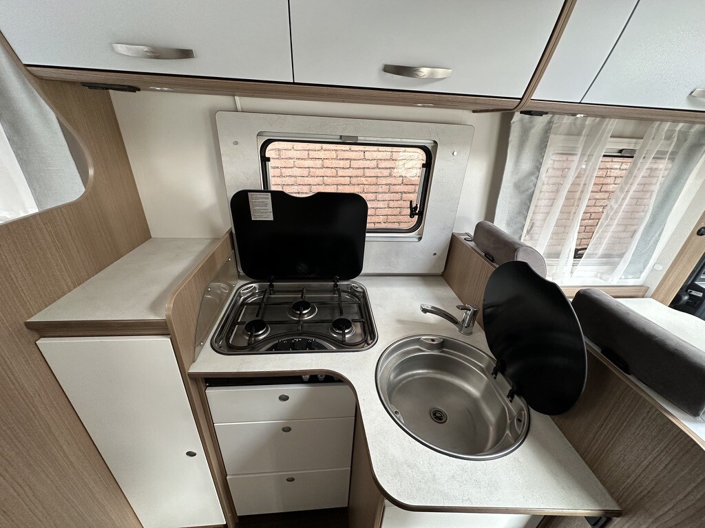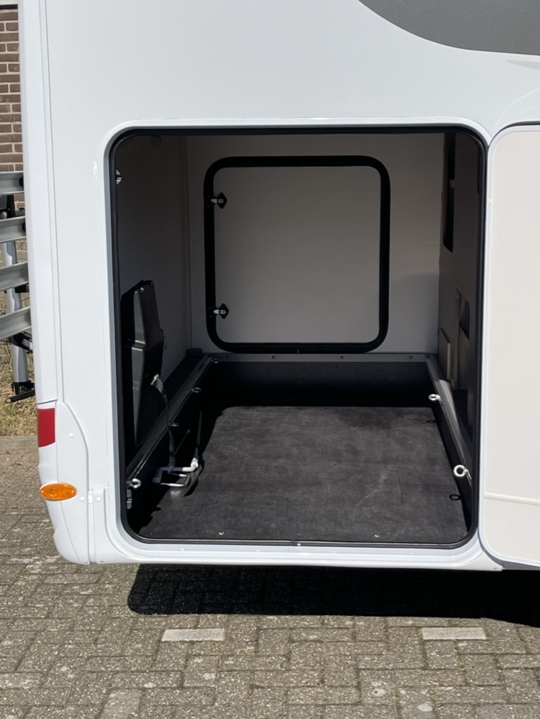 De camper is voorzien van plissé gordijnen voorin en rondom uitzetramen met combirol-/horgordijnen. De badkamer heeft een draaibare wand waardoor het toilet niet nat wordt tijdens het douchen en daarnaast een wastafel voorzien van mengkraan. De keuken is uitgerust met een 3-pits gasstel, een spoelbak met mengkraan en een koelvrieskast. De camper beschikt over een ruime garage en ook kasten en voldoende opbergvakken zijn voorhanden.