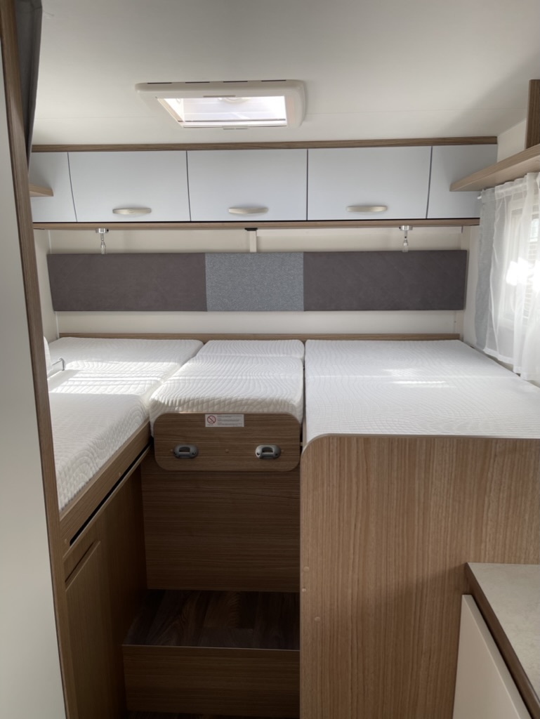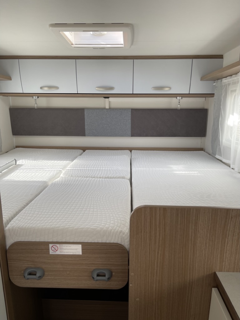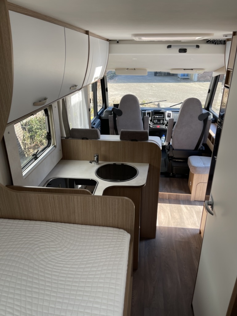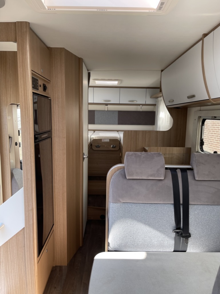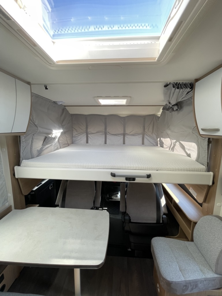 Zeer luxe uitgevoerde camper met enkele bedden achterin en een 2-peroons hefbed voorin. Een ruime zitgroep met draaibare voorstoelen en een zijstoel. Met deze royaal uitgeruste camper is het comfortabel reizen: panoramisch uitzicht, cruise control, 2 draaibare pilotenstoelen voorzien van armleuningen, en een luxe media systeem met touchscreen en achteruitrijcamera.