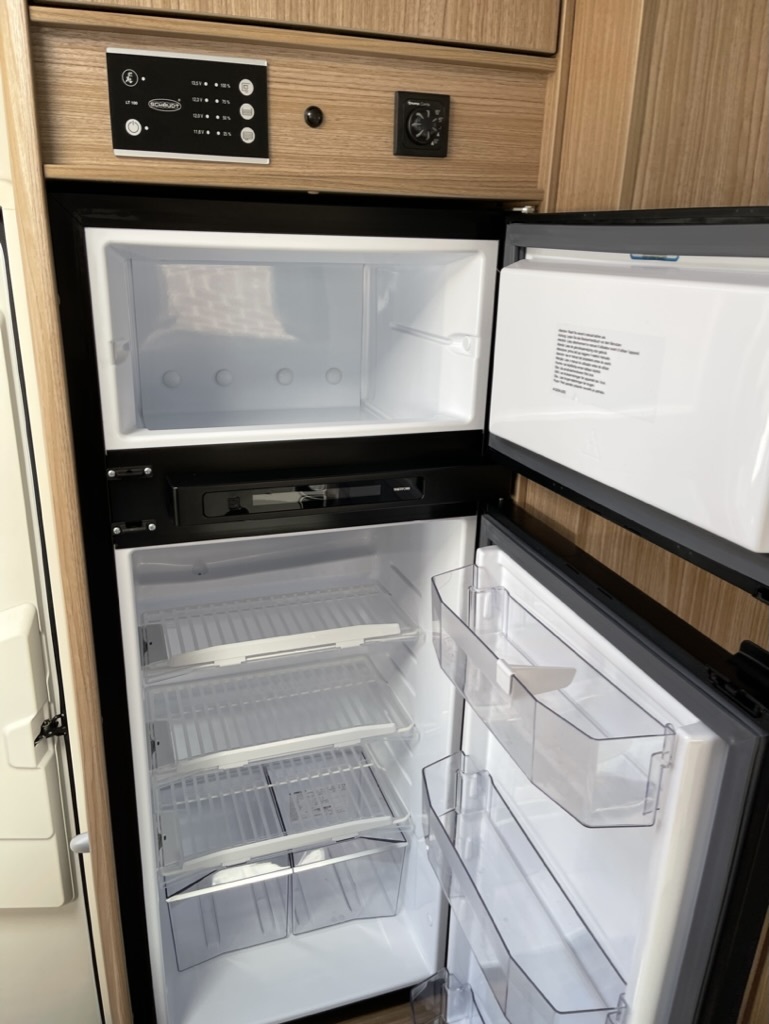 Voorzien van 12v/220v stroomvoorziening, gasflessen voor koken/koelkast/verwarming, verswatertank en afvalwatertank, radio/cd-speler, luifel, en fietsenrek.