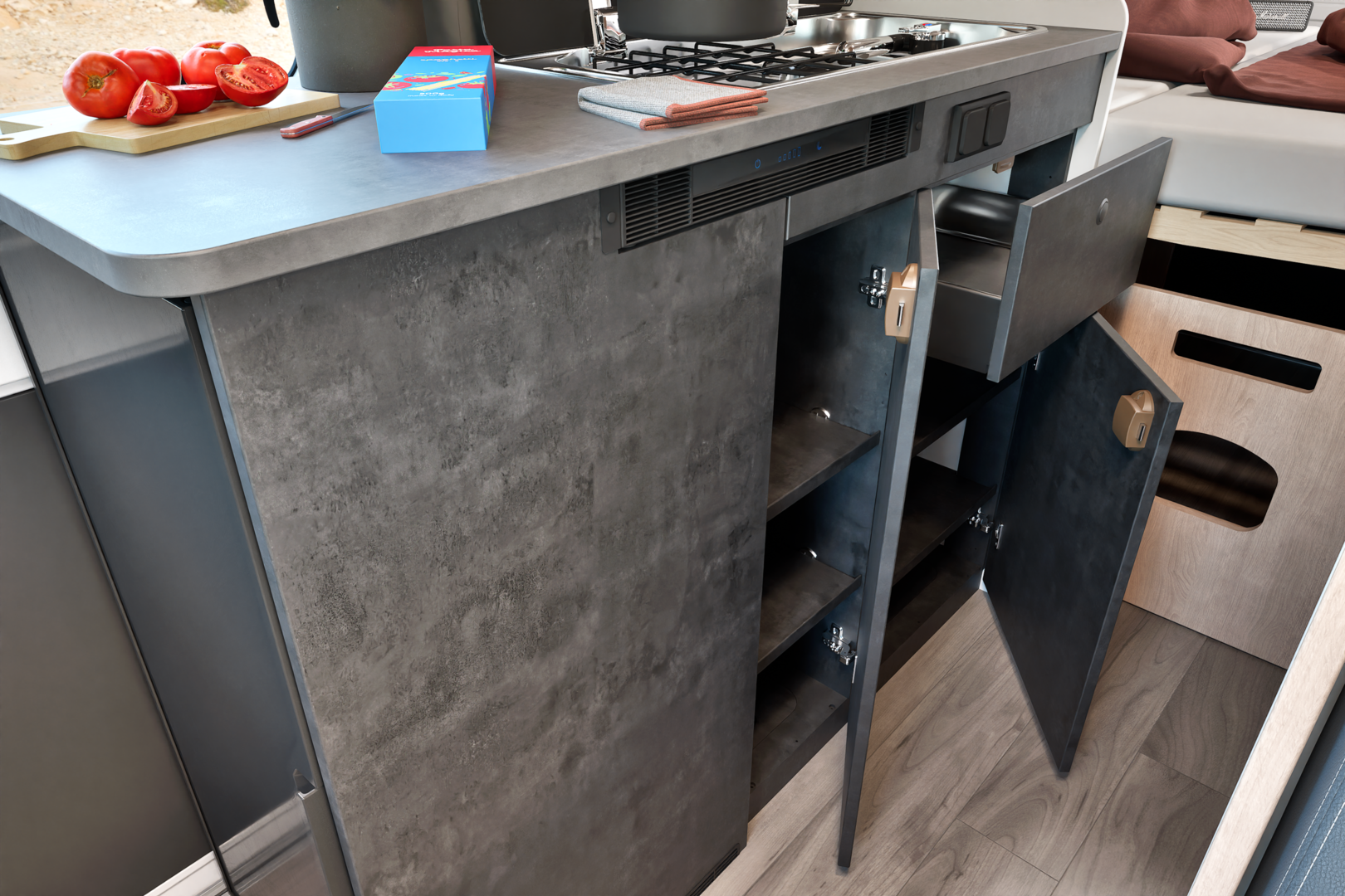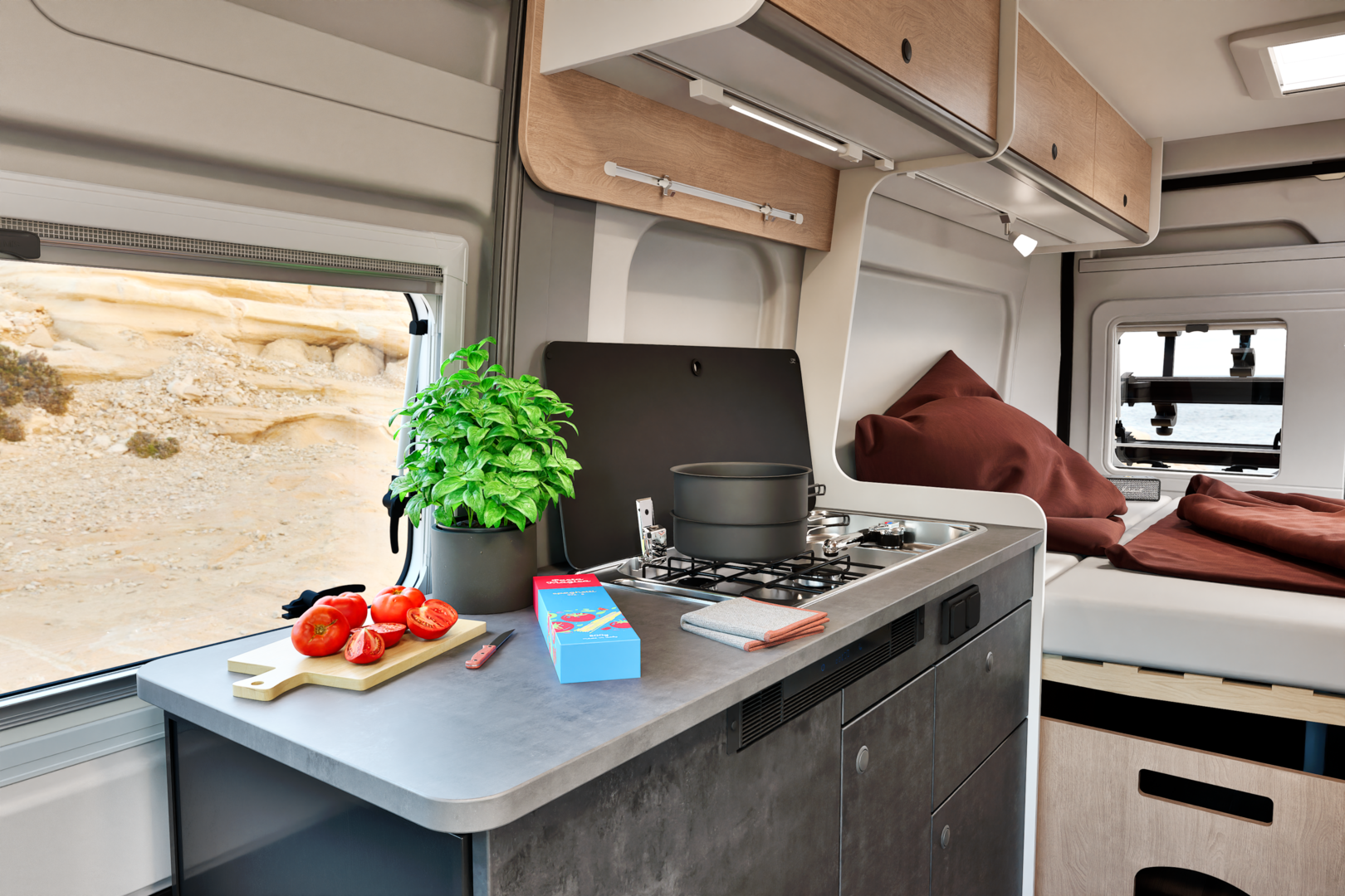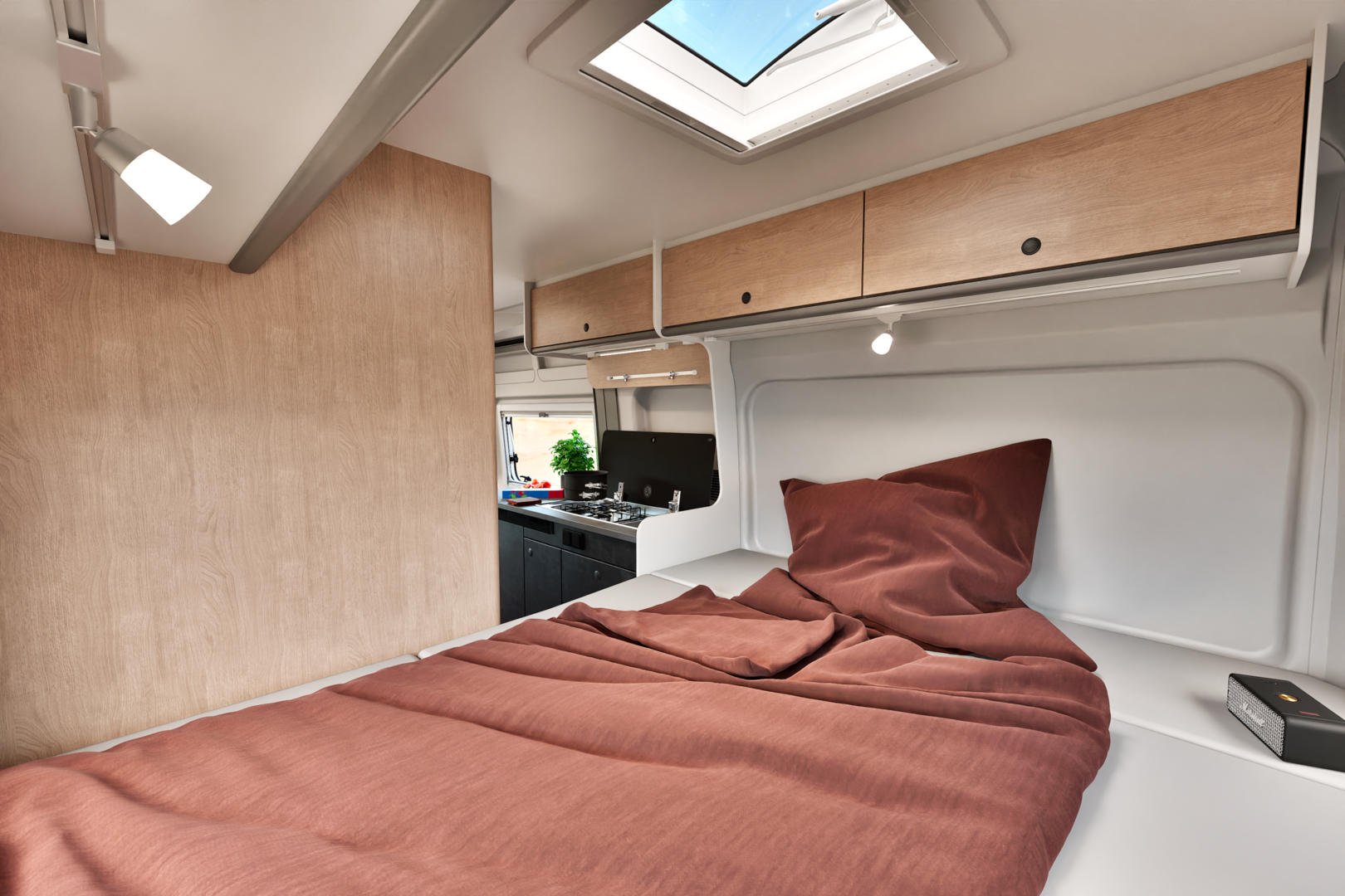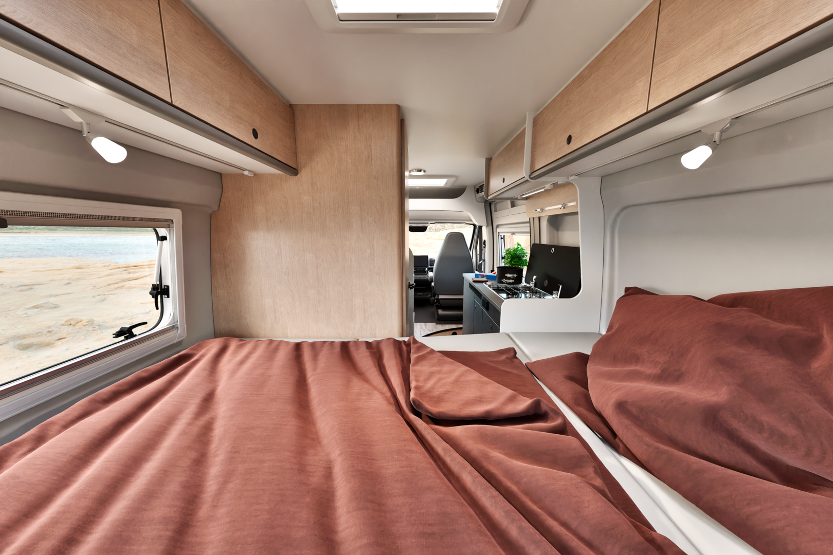 Luxe automaat camper met enkele bedden of kingsize bed. Plus hefbed.